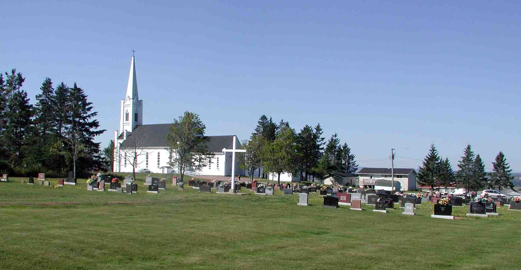 - Vue vers l'ouest - Le cimetière, avec l'église Notre-Dame de Lourdes à l'arrière plan