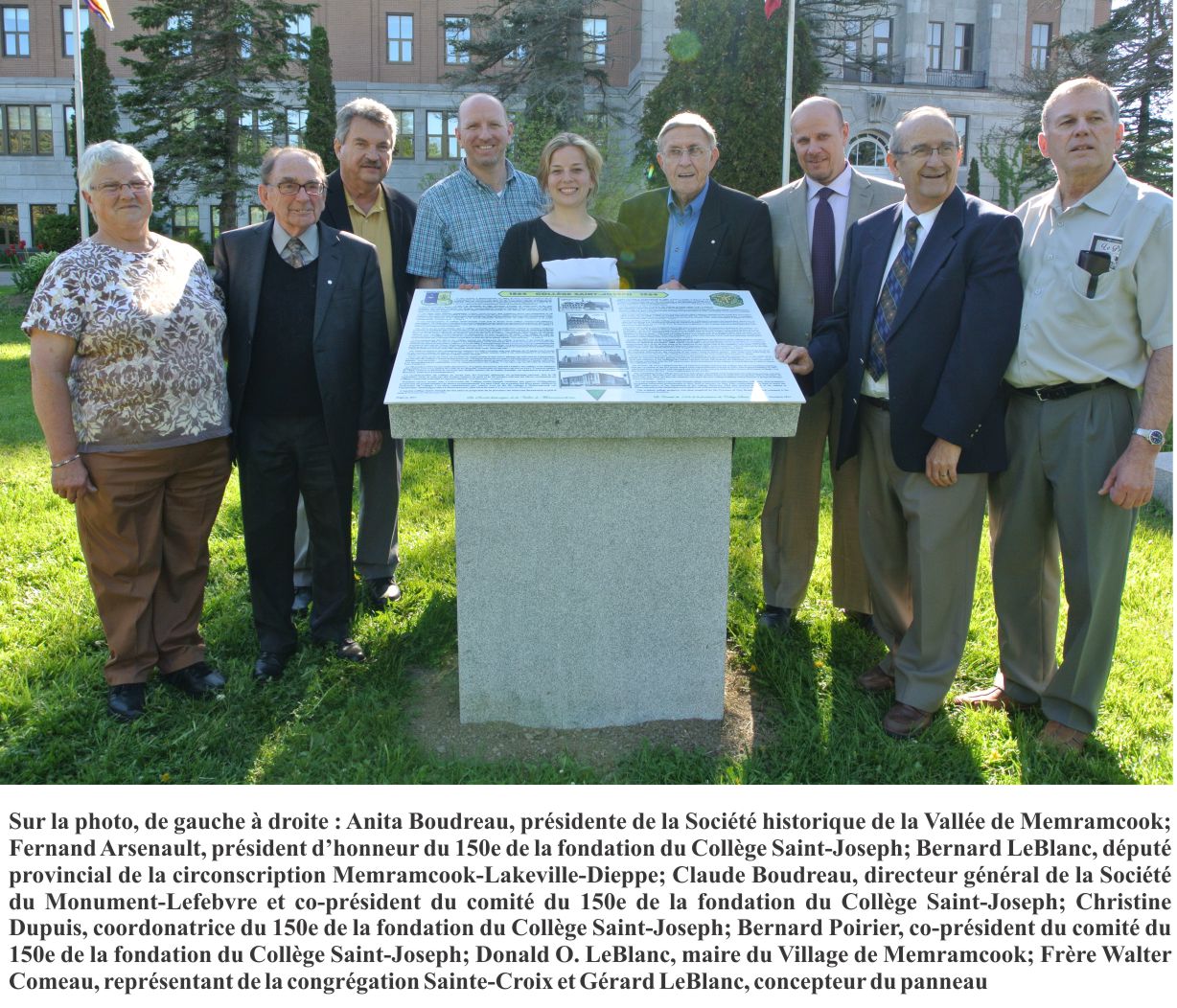 Pour souligner le 150e anniversaire de la fondation du Collège Saint-Joseph par le Père Camille Lefebvre, la Société a érigé un panneau commémoratif devant l'édifice de l'ancien Collège. Le dévoilement eut lieu le 8 juin 2014, 150 ans plus un jour après l'arrivée du Père Camille Lefebvre à Memramcook.