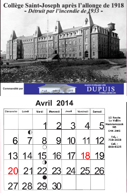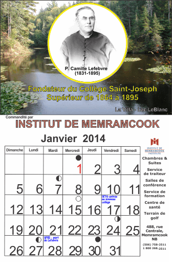 Un calendrier à thème historique pour l'année 2014 fut publié pour souligner le 150e anniversaire de la fondation du Collège Saint-Joseph par P. Camille Lefebvre et la Congrégation de Sainte-Croix