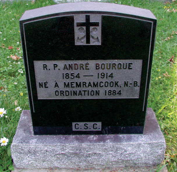 Le révérend père André T. Bourque, c.s.c., est mort, à onze heures, dimanche soir, le 28 du courant, à l’infirmerie du collège Saint-Joseph. Le révérend père Bourque était né au village des Beaumont, dans la paroisse de Memramcook, le 27 juillet 1851, de Thaddée Bourque et d’Anne Bourque.