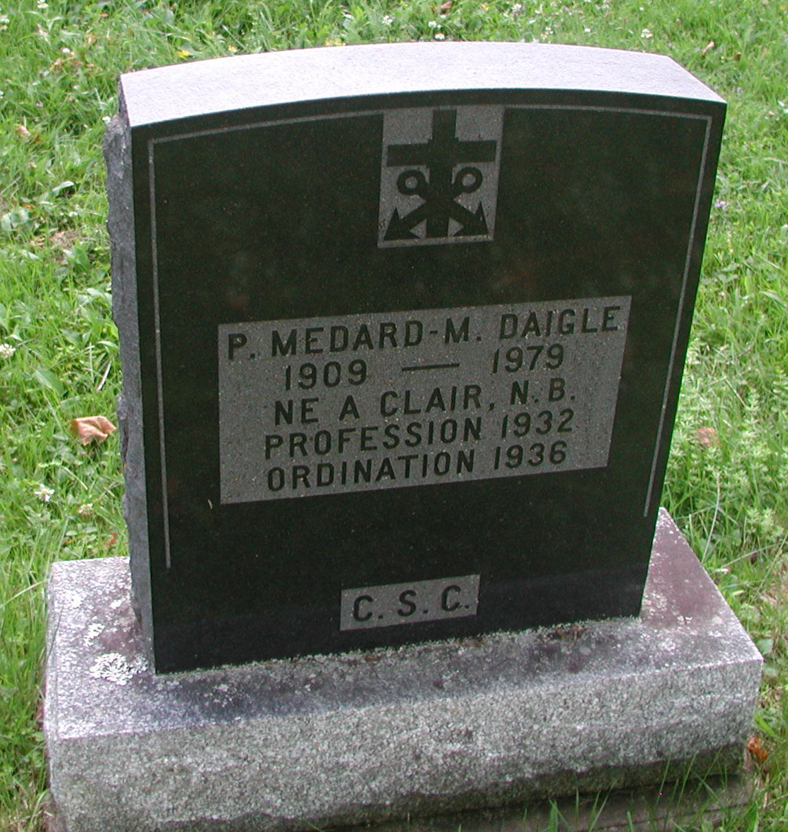 Le père Médard Marie Daigle, de la congrégation des Pères de la Sainte-Croix, à Moncton, est décédé vendredi soir à l'hôpital Dr Georges-L-Dumond, après une courte maladie à l'âge de 70 ans. Originaire de Claire, Madawaska, il était fils de Denis et Délina (née Soucy) Daigle.
