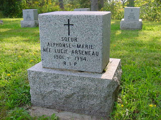 MONCTON -À la Maison mère Notre Dame du Sacré-Coeur de Moncton, le lundi 18 avril 1994, à l'âge de 92 ans, est décédée Sr Alphonse Marie (Lucie Arsenault) n.d.s.c., domiciliée à la Maison mère.