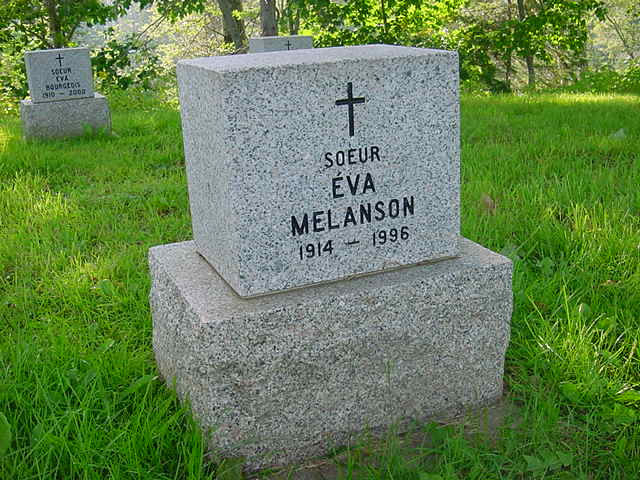 À Bathurst, le 1 novembre 1996 à l'âge de 82 ans, est décédé Soeur Eva Melanson (Marie-Adélia), n.d.s.c. Née à Memramcook, le 1 septembre 1914, elle était la fille de feu Philias Melanson et de feu Délia Saulnier.
