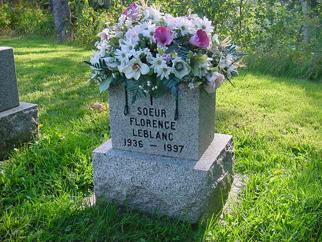 À la maison mère, Moncton, ce samedi 22 novembre 1997 à l'âge de 61 ans, est décédée Soeur Florence LeBlanc, n.d.s.c.