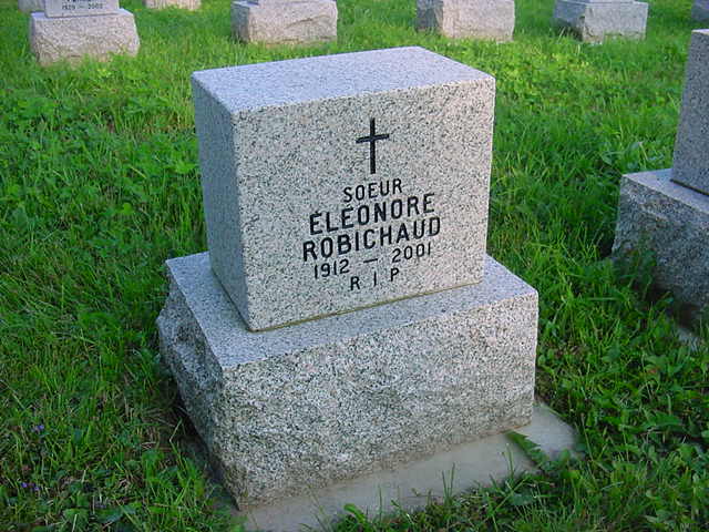 À la Maison-Mère des Religieuses Notre-Dame-du-Sacré-Coeur, rue King, à Moncton, le lundi 15 janvier 2001, à l'âge de 89 ans, est décédée Sr Éléonore Robichaud, n.d.s.c., domiciliée à la Maison-Mère.
