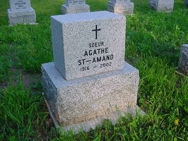À la Maison mère des Religieuses Notre-Dame-du-Sacré-Coeur de Moncton, le jeudi 26 décembre 2002, à l'âge de 86 ans, est décédée Soeur Agathe St-Amand, n.d.s.c. (Thomas-Marie), domiciliée à la Maison-Mère.