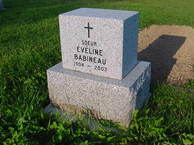 MONCTON - À la Maison mère des Religieuses Notre-Dame-du Sacré-Coeur de Moncton, le vendredi 7 mars 2003, à l'âge de 98 ans, est décédée après une courte maladie Soeur Eveline Babineau, n.d.s.c. (Marie-Théodora), domiciliée à la Maison mère.