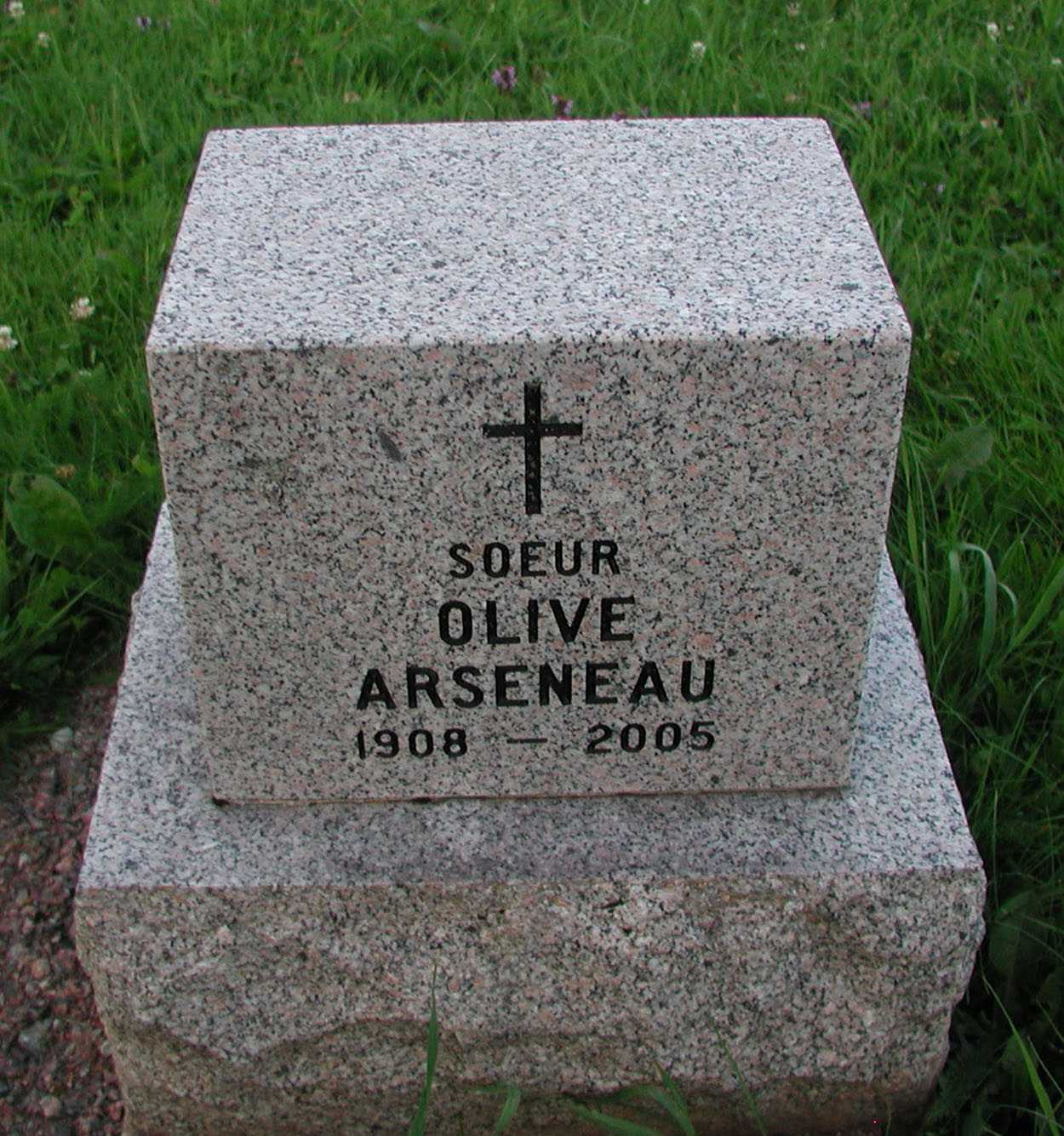 Soeur Olive Arseneau, n.d.s.c., agée de 96 ans, de la Maison-mère des Religieuses Notre-Dame-du-Sacré-Coeur, de la rue King à Moncton est décédée le dimanche 26 juin 2005 à sa résidence à la suite d'une longue maladie.