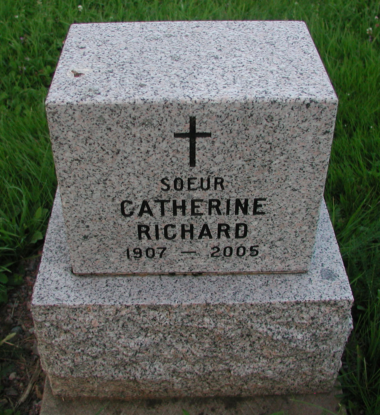 Née à Memramcook le 11 juin 1907, elle était fille de feu Camille Richard et de feu Lucille Bourque. Elle laisse dans le deuil sa famille religieuse, ainsi que plusieurs neveux et nièces. Elle était le dernier membre de sa famille immédiate. Outre ses parents, elle est précédédans la tombe par trois frères, Henri, Antoine, ptre., Hervé; deux soeurs, Cémida et Yvonne. La dépouille mortelle est exposée à la Maison-mère des Religieuses NotreDame-du-Sacré-Coeur, Pavillon NotreDame d'Acadie, (entrée ruelle Godfrey) Moncton à compter de lundi le 19 septembre de 14h à 21h. Les funérailles auront lieu à la chapelle de la Maison mère des Religieuses Notre-Dame-du Sacré-Coeur le mardi 20 septembre 2005 à 9h30. L'inhumation se fera dans le cimetière de Memramcook. La direction des funérailles a été confiée aux soins professionnel de la Maison funéraire Frenette.