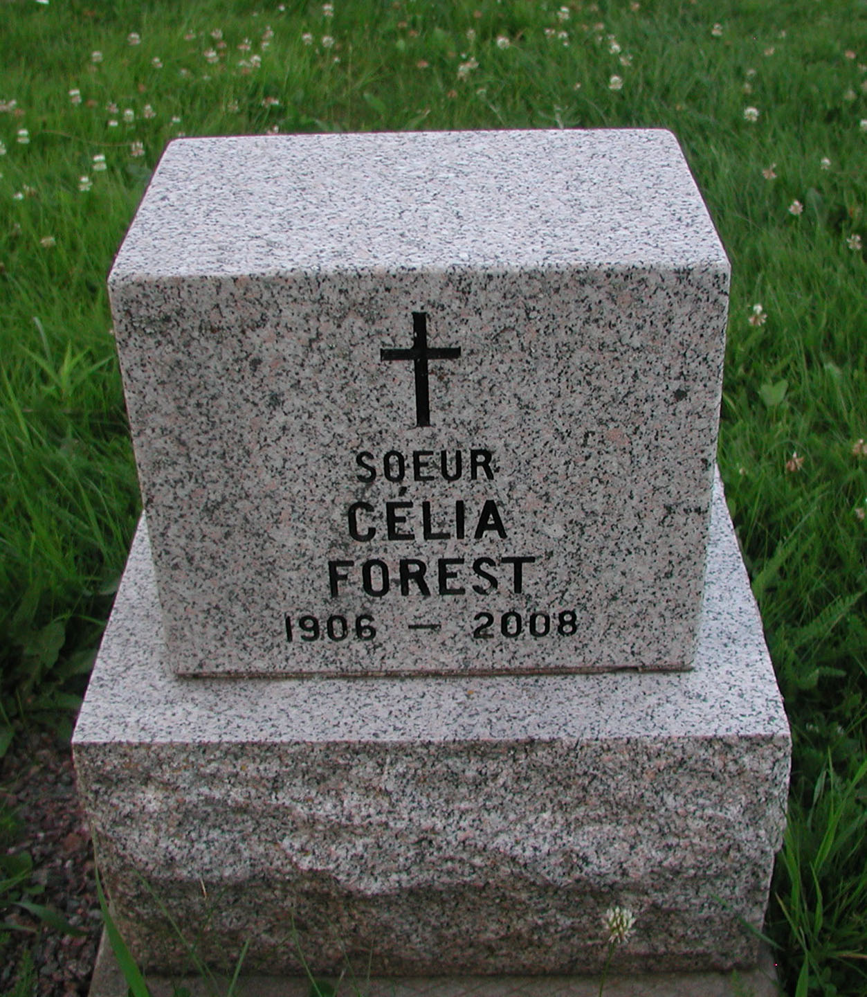 Paisiblement dans son sommeil à la Maison-mère des Religieuses Notre-Dame-du-Sacré-Coeur à Moncton, le dimanche 10 février 2008, à l'âge de 101 ans, est décédée Soeur Célia Forest (Sr Marie-Joseph).