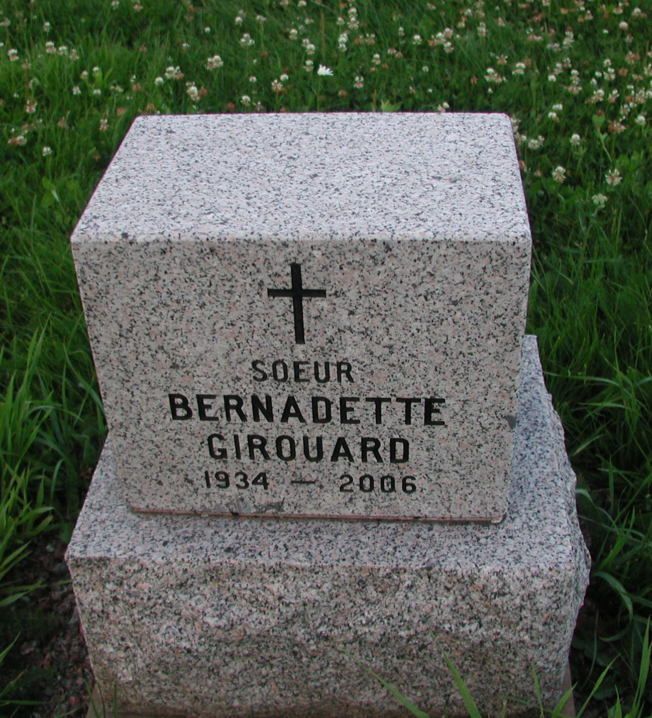 À la Maison-mère des Religieuses N.-D.-du-Sacré-Coeur de Moncton, le mercredi 28 juin 2006, à l'âge de 72 ans, est décédée Soeur Bernadette Girouard, n.d.s.c. (Bernadette-Marie) domiciliée à Dieppe, Résidence Sainte-Hélène .