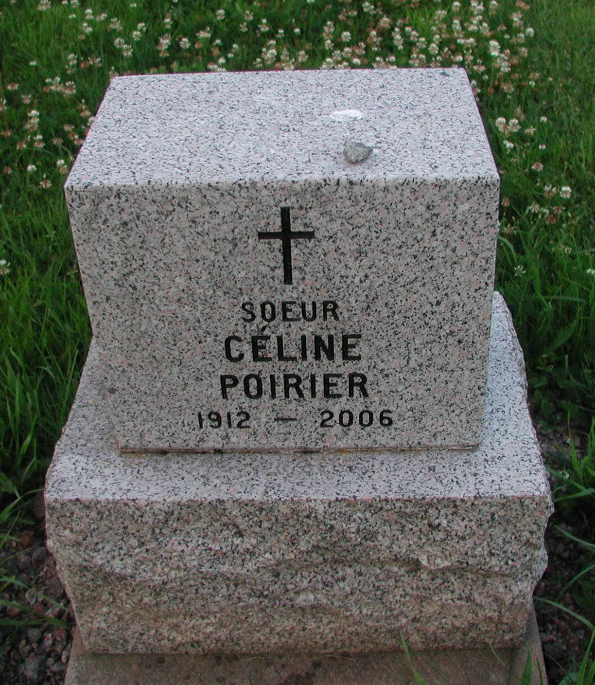 À la maison-mère des Religieuses Notre-Dame-du-Sacré-Coeur, le mardi 18 avril 2006, à l'âge de 94 ans, est décédée Soeur Céline Poirier, n.d.s.c. (Soeur Georges-Marie), domiciliée à Moncton, rue King.