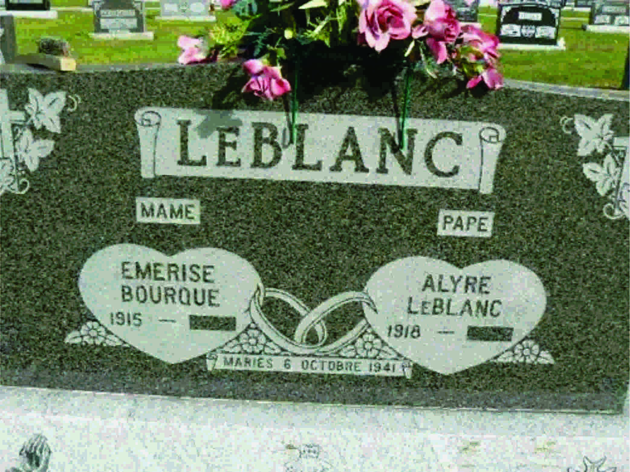 Alyre avait épousé Emerise à Auguste Bourque à la cathédrale l’Assomption à Moncton le 6 octobre 1941.