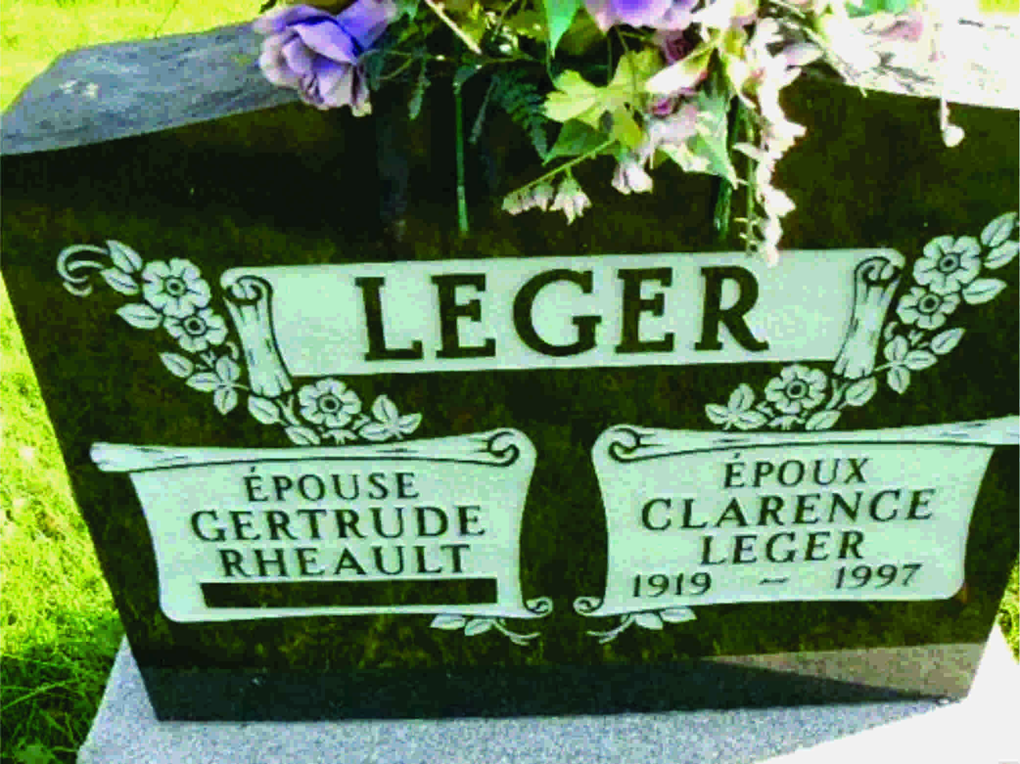 Clarence Joseph Valmour Léger est né à Moncton le 28 décembre 1919, le fils de Zénon à Philias de McGinley Corner et de Pamela à Charles Richard de Sainte-Anne-de-Kent qui s’épousèrent à la paroisse l’Assomption le 5 mai 1916.