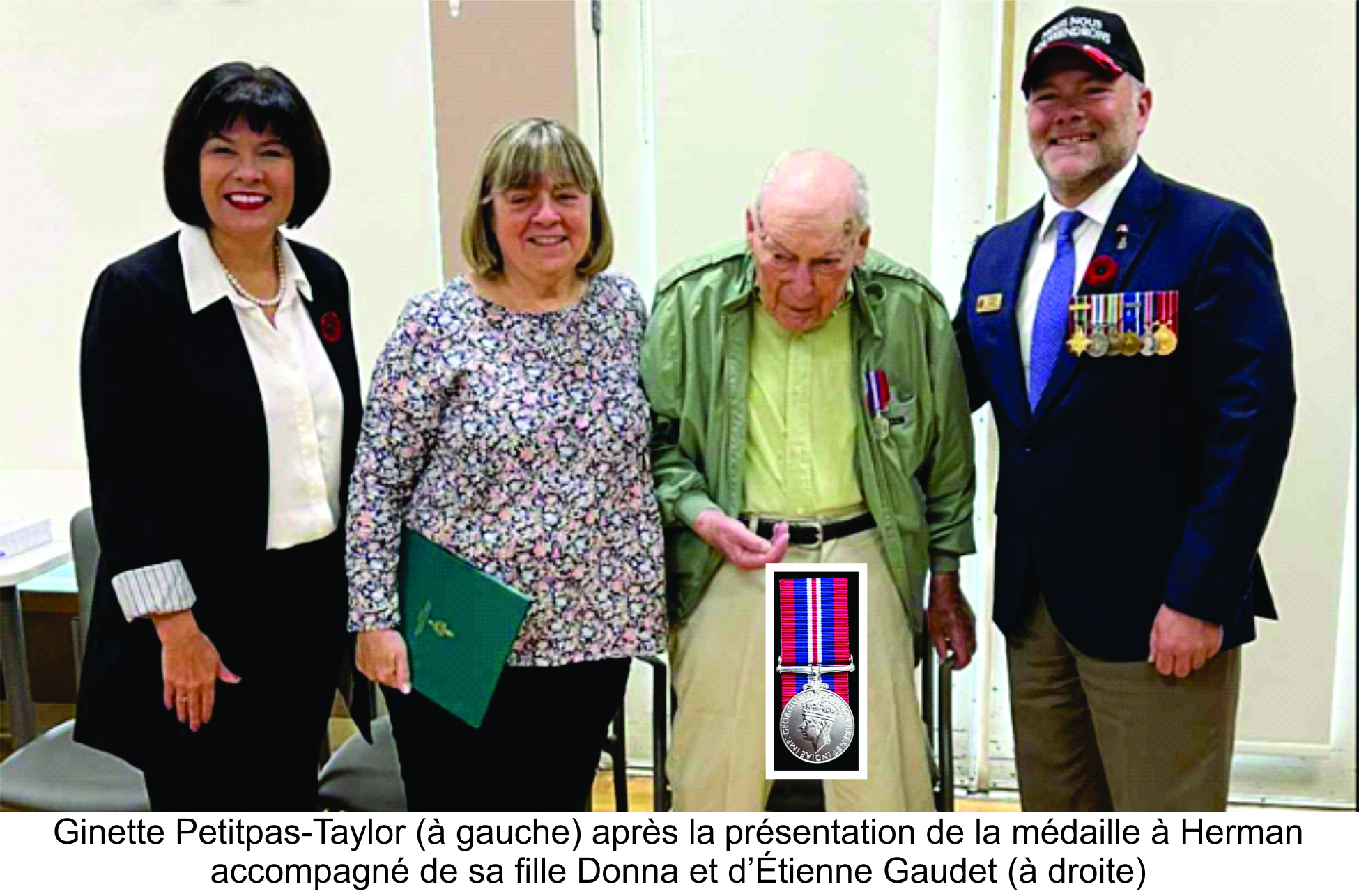80 ans après l'avoir mérité, M. Herman LeBlanc fut décerné à Moncton la Médaille de guerre 1939-1945 pour son engagement avec l'armée canadienne pendant la Seconde Guerre mondiale.
