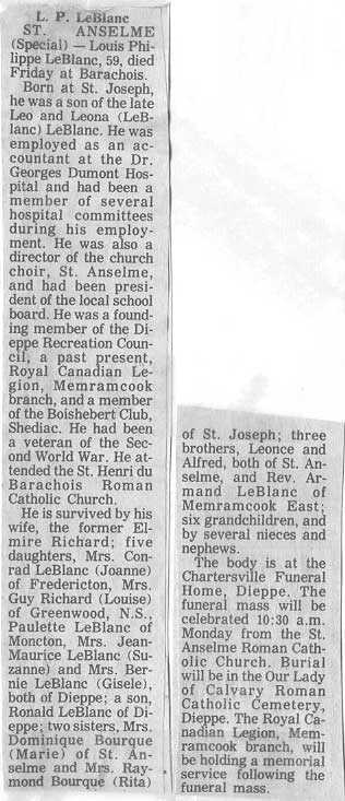 Vétéran de la Seconde Guerre mondiale, il avait épousé Elmire à Jean Richard à Memramcook le 19 juin 1943.